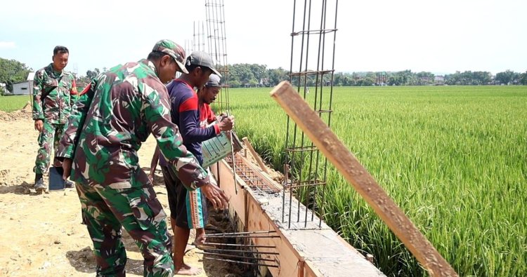 BOJONEGORO, - Dalam rangka mendukung program pemerintah terkait pemberdayaan ekonomi masyarakat dari level desa, Bintara Pembina Desa (Babinsa) Koramil 22 Trucuk Kodim 0813 Bojonegoro Serka Matrawi melaksanakan pendampingan pembangunan fisik gerai, pergudangan dan kelengkapan Koperasi Desa/Kelurahan Merah Putih (KD/KMP) di Desa Guyangan Kecamatan Trucuk Kabupaten Bojonegoro.